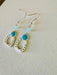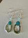 A single, silver tone horseshoe is accented with sparkly aqua stones and an inlay of turquoise color enamel. Hanging from a wire with a single, delicate aqua bead, these earrings are sure to please horse lovers of the Western persuasion.