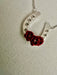 This silver tone horseshoe is accented with white CZ stones, and is adorned with three deep red roses.