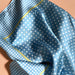 Beautiful silky soft flowing polyester. Absolutely stunning Neck Scarf of exceptional quality, in a timeless spot pattern. A pretty colour scheme of sky blue, white and lemon yellow