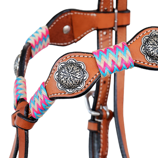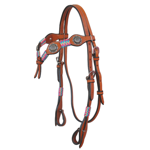 The Conchita Headstall by Smooth Like Cactus. Decorated with brightly coloured rawhide buttons and quality detailed silver conchos, this beautiful ...