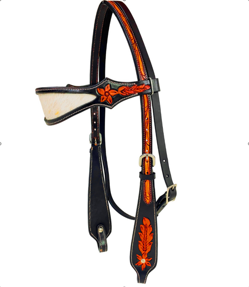 "TWO TONED" Cowhide Headstall - Smooth Like Cactus