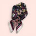 Beautiful silky soft flowing polyester. Absolutely stunning Neck Scarf of exceptional quality, in a timeless rustic and whimsical pattern. A pretty, multicolour scheme with a dusty pink and black background with a crimson and white border.